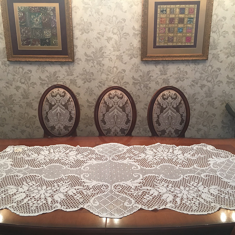Скатерть раннер предназначен для создания праздничного интерьера дома. Изделие Шедевр поможет создать неповторимую атмосферу счастья и торжества. Поэтому подойдет для декорирования свадебного или юбилейного стола. Благодаря тому, что дорожка изготовлена из хлопковой пряжи, ее можно накрахмалить для придания жесткости.