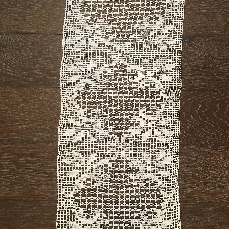 Выбирая подарок маме или любимой девушке, обратите внимание на дорожку для декорирования стола. Утонченная ручная работа, в которой виден вкус и мастерство, обязательно понравится имениннице. Изделие имеет размер 30х70 см и подойдет для украшения большого стола. Уложенная посередине, она освежит темную столешницу и придаст новизны всему интерьеру.