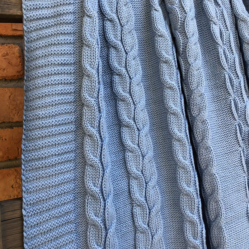 Изделие выполнено из пряжи, в составе которой шерсть альпака и акрил. Благодаря этому, полотно получилось шелковистым и мягким. Детский плед, связаный из такой пряжи позволит телу дышать, а его легкость будет комфортной даже для самого маленького ребенка. Плед детский интернет-магазина KAANNI создан в размере 120х90 см, что позволит укрывать малыша вплоть до школьного возраста.