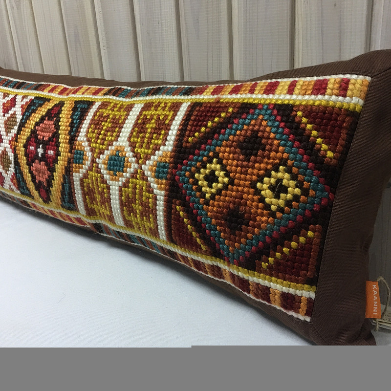 Выбирая большую и длинную подушку, на которой можно не только спать, а и использовать для украшения комнаты, стоит обратить внимание именно на этот экземпляр. Вышитый орнамент многоцветен и разнообразен по своей структуре. Подойдет для комнаты в классическом стиле и не только. Наполнением служит синтепух, который отличается мягкостью и быстро восстанавливается после сминания.