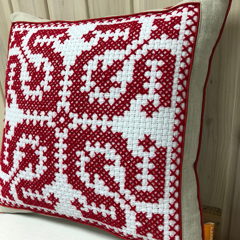 Кроме того, мы использовали цветочные мотивы в вышивке. Геометрические цветы в красном исполнении привлекают любовь, считаются самыми сильными оберегами для девушек. Поэтому, вышитая подушка Конфетти 10 может стать отличным подарком на день Валентина, 8 марта или день рождения для любой девушки.