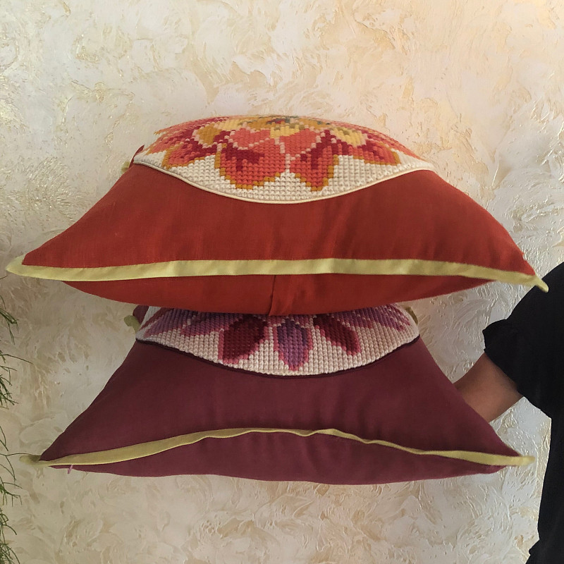 Лотос – возрождение, чистота, истина, стремление к познанию. Вышитый на подушке лотос, для тех, кто верит в магию доброты. С мягкой вышитой подушкой в доме станет немножко уютнее. Эта подушка сделана вручную всего в двух экземплярах.