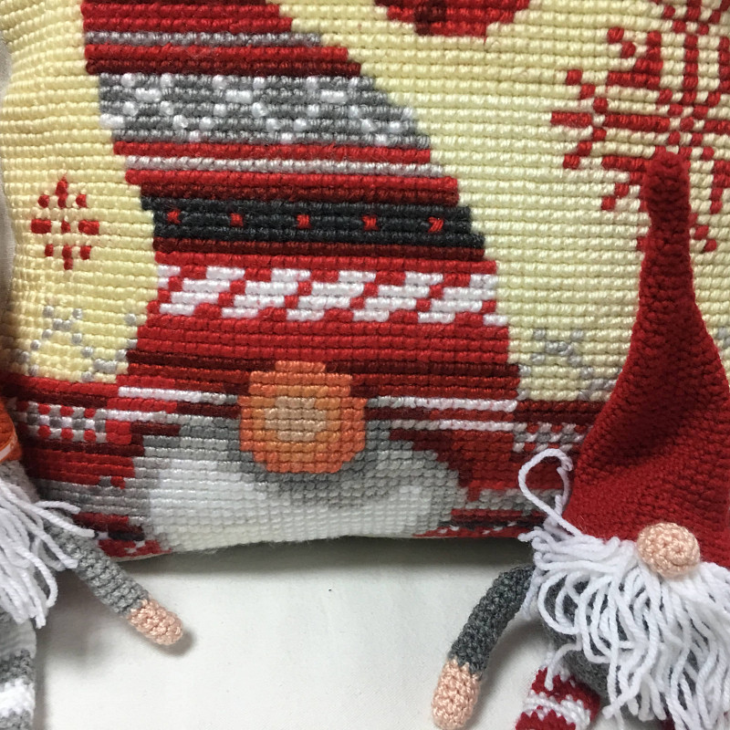 Изделие создано всего в 2-х экземплярах, а потому, если купить новогоднюю подушку Красный гном, то интерьер станет с оттенком эксклюзивности. При желании создать гармоничную обстановку, стоит купить несколько подобных, сочетающихся между собой изделий.