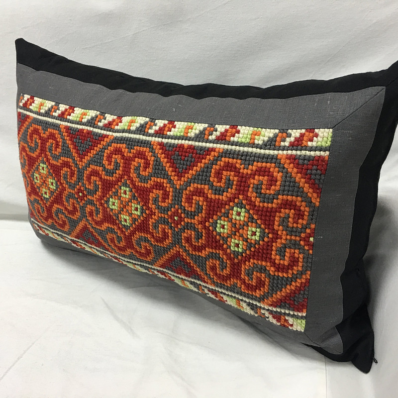 Интернет-магазин дизайнерских декоративных подушек предлагает изделия только ручной работы. Украшением, Огненный завиток большая, служит вышивка ручной работы. Яркий узор напоминает языки пламени, и мастерское исполнение передает живость их игры.