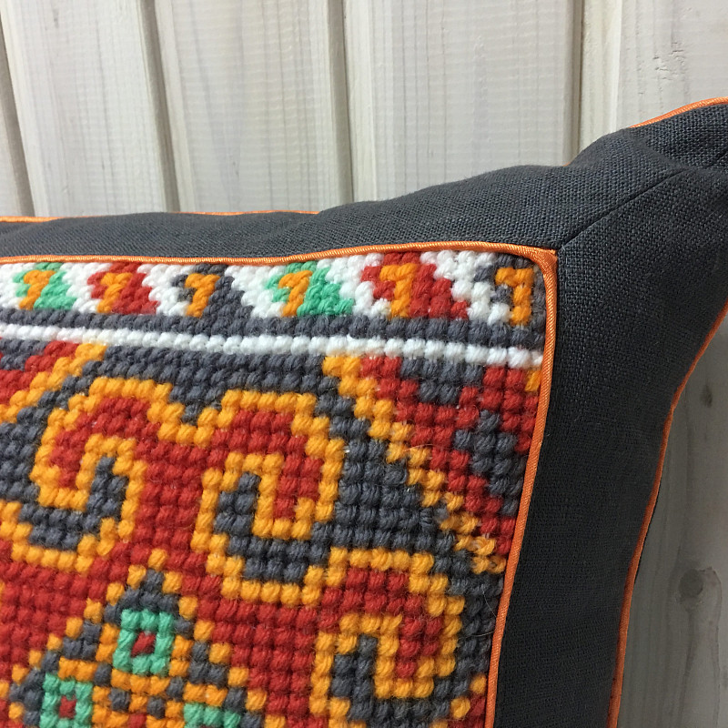 Волшебный мир специй и солнца воплощен в вышивке декоративной подушки Украинский узор на индийский лад. Яркие языки пламени олицетворяют жар далекой земли, которым пропитан даже воздух древней страны.