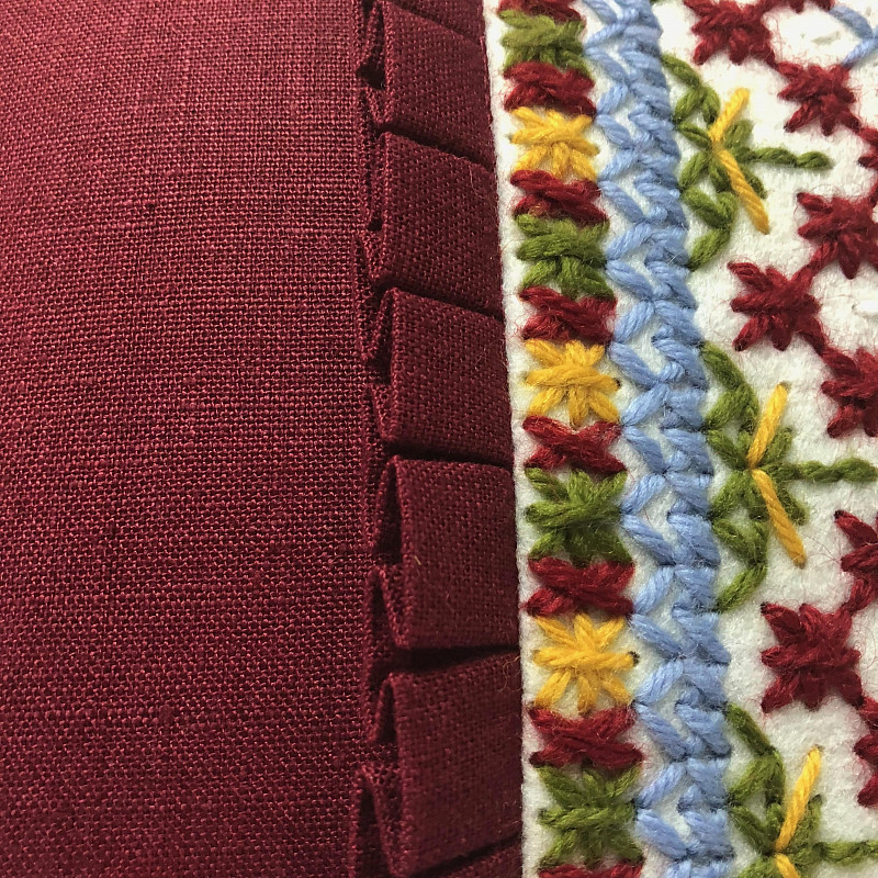Изделие выполнено вручную. Его украшает яркая вышивка в современном стиле, которая расположилась на вставке из белоснежного фетра. Узор напоминает распустившиеся цветы на снегу, говоря о том, что жизнь все равно возьмет верх, и новый цикл природы не заставит себя ждать.