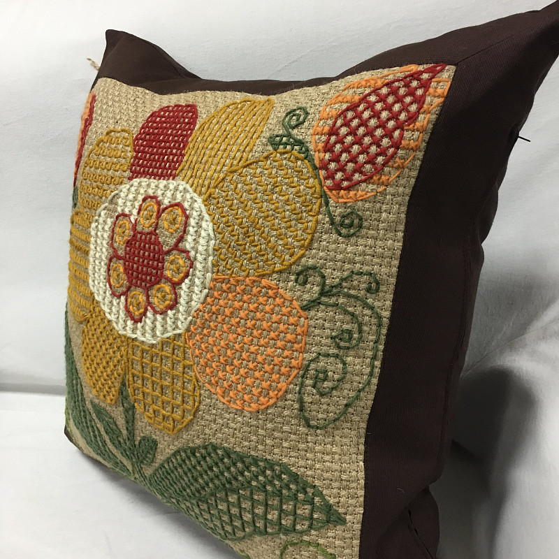 Подушка в интерьере с подобным оформлением станет изюминкой любого стиля. Придаст легкости классическому и идеально впишется в прованс. Гармонично вольется в этно стиль и добавит оригинальности романтическому.