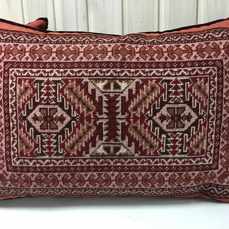 Особенностью декоративной подушки гобелен является техника исполнения. На 1 кв.см приходится 30 стежков, что делает работу утонченным произведением искусства. Авторский орнамент дополняет эксклюзивность изделия, что делает его необыкновенно оригинальным.