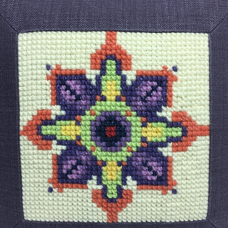Купить маленькую подушку с яркой вышивкой можно для обновления интерьера. Благодаря использованным оттенкам в узоре, она гармонично впишется в классическое убранство комнаты, однако слегка сгладит его строгость.