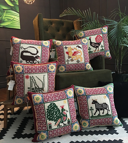 Декоративные подушки ручной работы украшает вышивка, созданная в качестве оберега. Старинная техника изображения разных животных, которые в давние времена были тотемами, наполнена защитной силой, которая не потеряла своих свойств с течением времени.