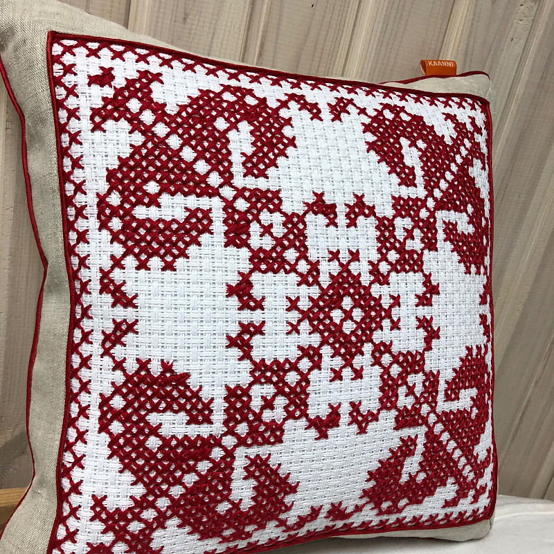 Подушка Конфетти 12 вышита вручную с использованием красного цвета и специальных геометрических рисунков. Конфетти 12 станет оберегом для любви, сохранения семьи, защиты от зла. А еще красный цвет в вышивке означает сексуальную неотразимость.