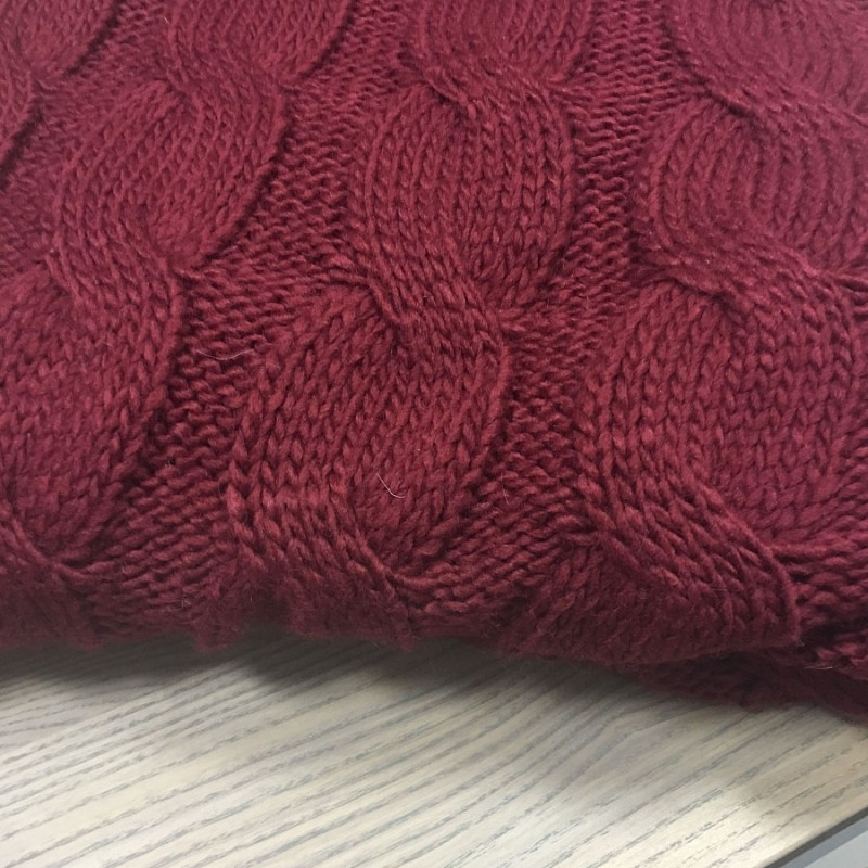 Вязаный плед Косы бордо – мягкое покрывало из шерсти и акрила. Делает отдых более уютным, нежели под фабричным изделием.